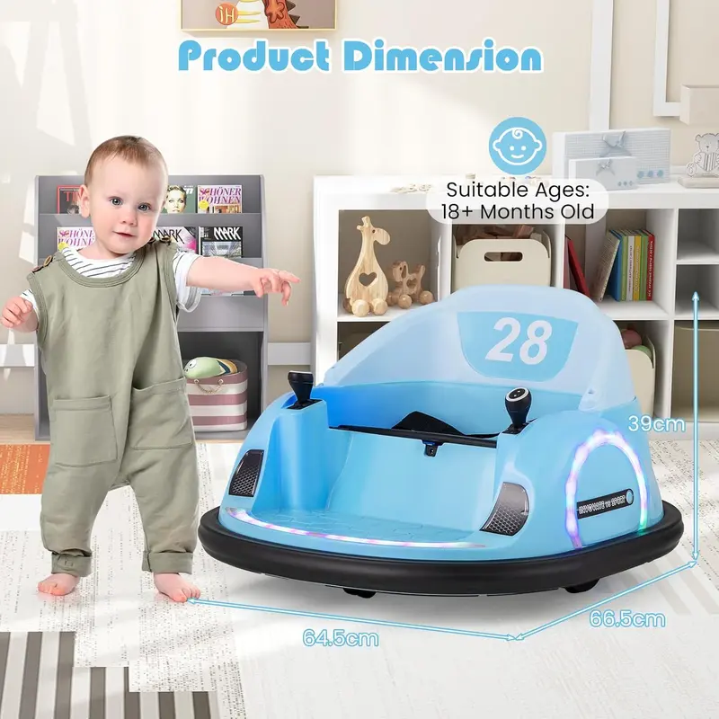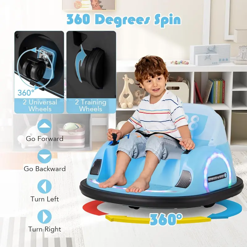 The colorful lights on the COSTWAY children’s bumper car add an extra touch of excitement and make it stand out.